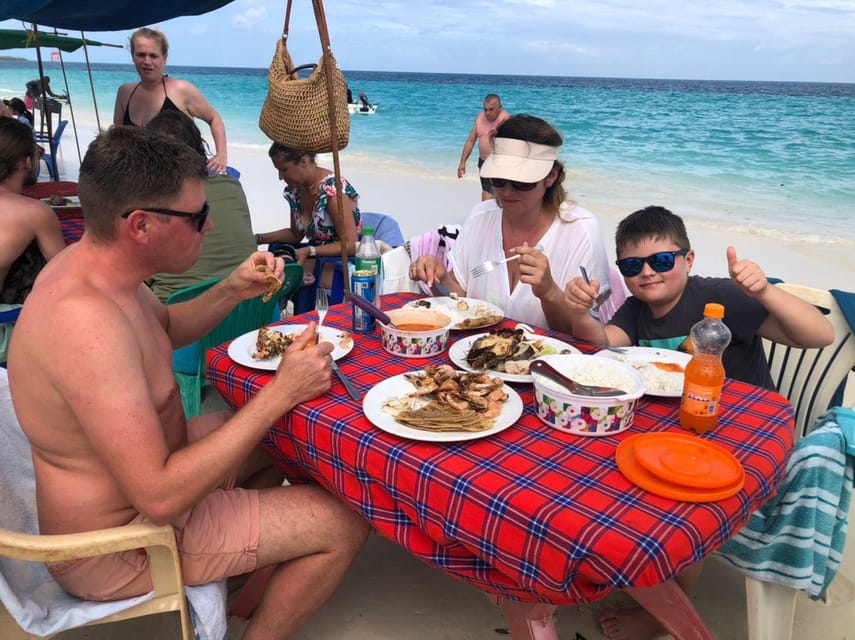 A dolphin watching tour to Kizimkazi, located in Zanzibar, Tanzania, offers a unique opportunity to observe dolphins in their natural environment. Kizimkazi is known for its population of bottlenose and humpback dolphins, making it a popular destination for dolphin watching tours. The captain will take you to the best dolphin-spotting spots, and if you're lucky, you might even get to swim with them! During this day trip, you'll have the opportunity to explore Pungume Sandbar, located in the southwest of Zanzibar Island, near Kizimkazi. This serene sanctuary features beautiful white beaches and crystal-clear waters ideal for swimming and snorkeling! When you reach Pungume Sandbar, you'll be able to fully enjoy the surroundings by swimming with starfish all around this beautiful sandbar! While you enjoy yourself, your skipper will prepare a fresh seafood barbecue with grilled lobsters, shrimps, fish fillets, octopus and squid which will be served with chapati, Swahili salad, rice and a delectable coconut sauce for your lunch.